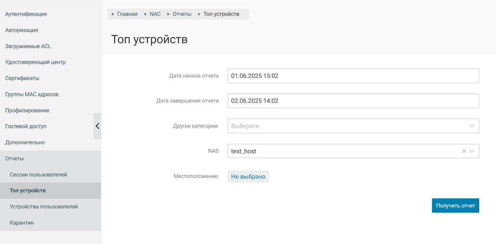 Детализированный отчёт по устройствам с дополнительными параметрами аутентификации.