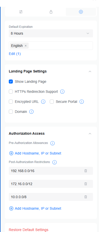 В веб-интерфейсе WNAM 2 настройте работу с гостевым доступом, в разделе NAC. Выберите необходимые способы, добавьте логотип, исправьте тексты сообщений,