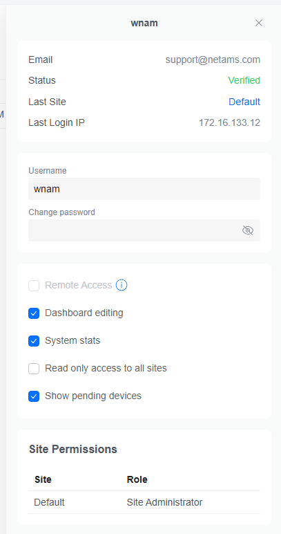 - Создание служебного пользователя (например с логином wnam) для работы по API. Возможно, для его активации вам понадобится указать настройки почтового релея. Проверьте, что под этим логином и паролем можно зайти в веб-интерфейс контроллера Unifi.