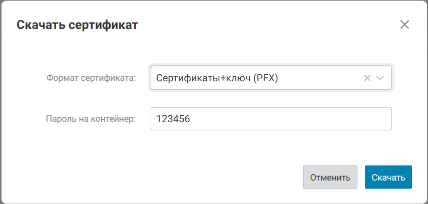 - скачать сертификат (на выбор предоставлено 5 форматов для скачивания);