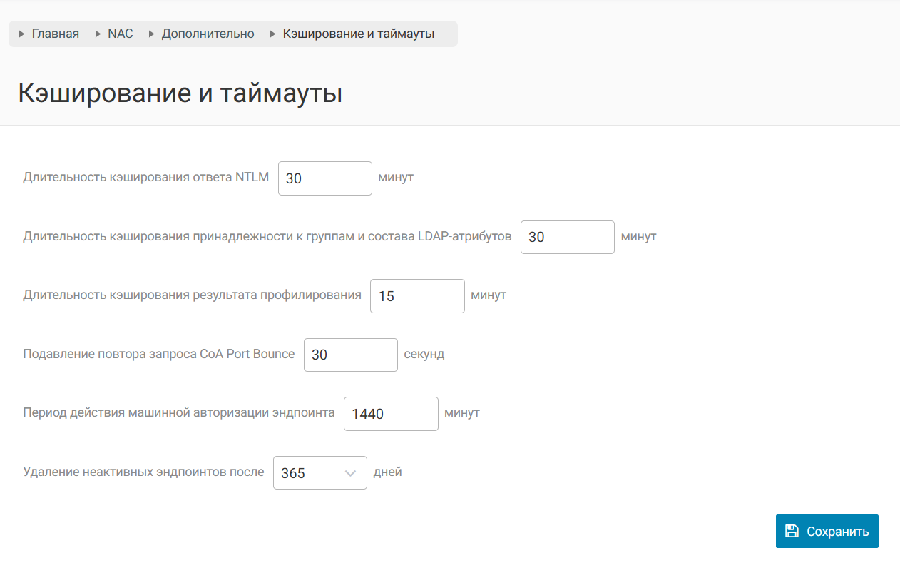 - Длительность кэширования принадлежности к группам и состава LDAP-атрибутов.