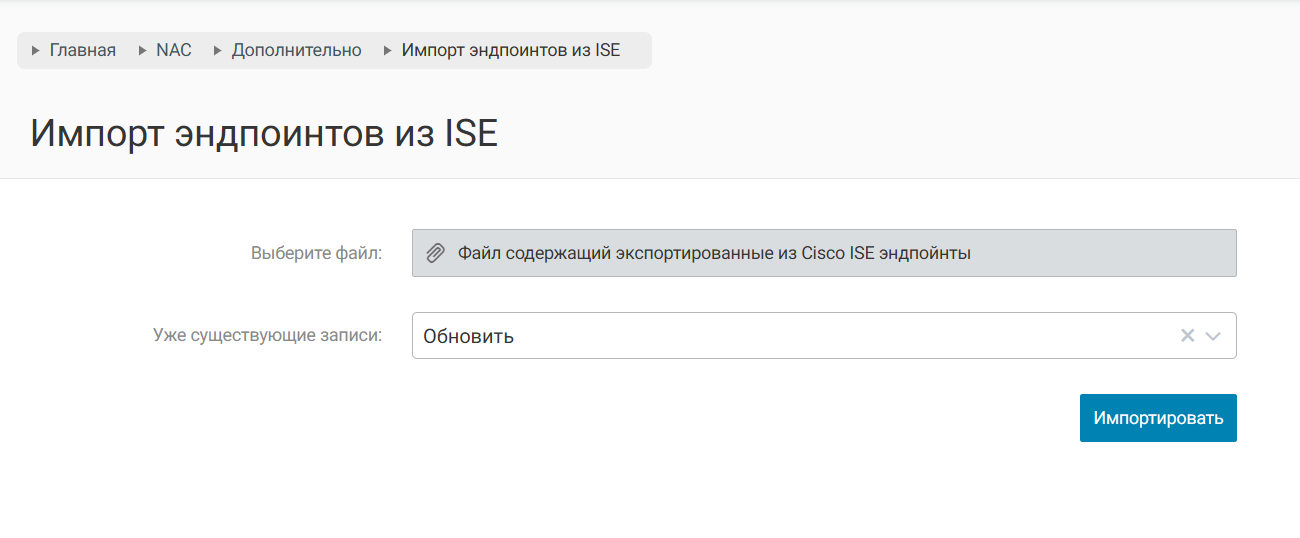 - Нажмите кнопку "Файл содержащий экспортированные из Cisco ISE эндпойнты "