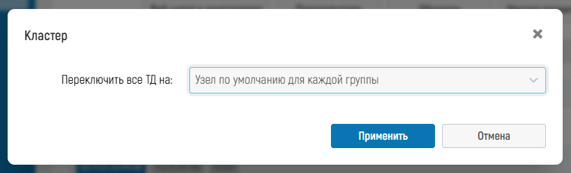 - Узел по умолчанию для каждой группы - точки будут переключены на узлы, которые установлены по умолчанию в группе каждой точки, или если они не установлены, то на тот узел, который каждая точка определила как ведущий при первичном подключении;